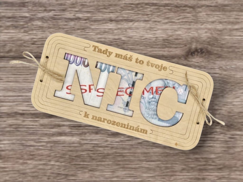 Na první pohled je to jen dřevěná karta, ale ve skutečnosti je to geniální způsob, jak darovat "nic" s pořádnou dávkou humoru a zároveň věnovat něco skutečně hodnotného – peníze! Karta je elegantně zpracovaná z kvalitního dřeva, což z ní dělá nejen vtipný, ale i stylový dárek.