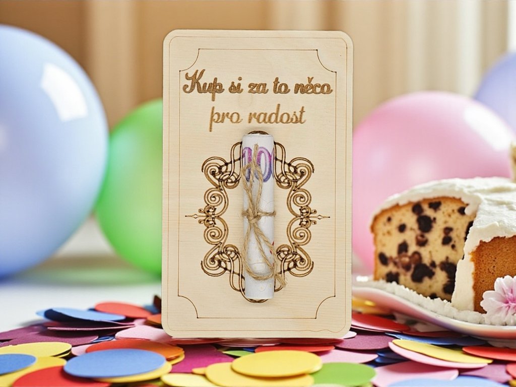 - Dostanete dárek z kvalitního českého dřeva – žádné levné papírové obálky.