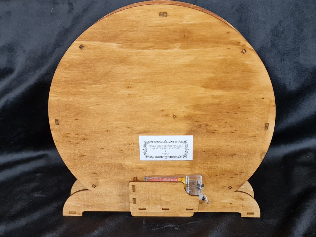 Vzhledem k použité technologii výroby a materiálům, nelze zaručit naprostou shodnost s fotografií (barevný odstín, hloubka gravury, míra detailů, atd..) každý produkt je tak svým způsobem jedinečným originálem. Navíc díky laserovému pálení mají produkty svou specifickou kouřovou vůni, tak však časem vyprchá.